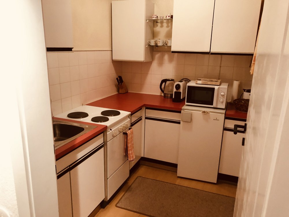 - kuchyně (kuchyňská linka s kompletním vybavením, dřez, elektrický sporák s troubou, lednice, mikrovlnná trouba, kávovar Tchibo (kapsle s sebou), topinkovač, rychlovarná konvice, vysavač).
